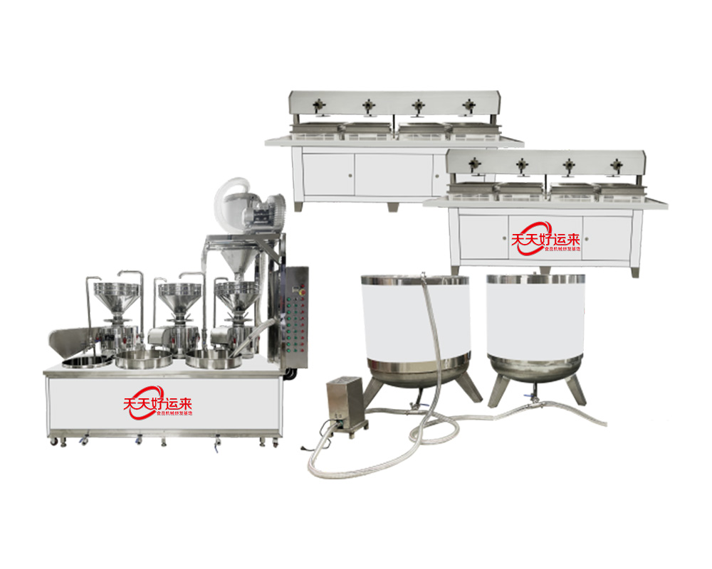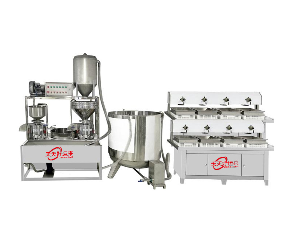 我公司生產(chǎn)豆腐機(jī)在國內(nèi)是較早的企業(yè),多年來通過對(duì)設(shè)備的不斷改進(jìn),利用現(xiàn)代科技與傳統(tǒng)工藝的完美結(jié)合。使設(shè)備外觀設(shè)計(jì)美觀、智能化高,操作簡單,主要有自動(dòng)上豆系統(tǒng)、磨漿機(jī)系統(tǒng)、拌渣提升系統(tǒng)、煮漿桶(蒸氣機(jī)用戶自備)、成型機(jī)等組成。機(jī)器采用不銹鋼制造,干凈衛(wèi)生,技術(shù)領(lǐng)先,質(zhì)量可靠,經(jīng)久耐用。實(shí)現(xiàn)了批量生產(chǎn)過程自動(dòng)化,具有高效、省時(shí)、耗能低等優(yōu)點(diǎn)。采用先進(jìn)空真上豆技術(shù)和連續(xù)磨漿技術(shù),瞬間加熱工藝,保證了蛋白質(zhì)不受破壞,從而使生產(chǎn)出來的豆制品營養(yǎng)更豐富,味道更鮮美。工藝流程: 將浸泡好的黃豆由高速分離磨漿機(jī)加工,排出豆渣,產(chǎn)出的豆?jié){經(jīng)過蒸汽加熱達(dá)到去腥,并煮漿均質(zhì),并添加輔助原料消泡、凝固劑(如鹵水、石膏、內(nèi)脂、酸漿等)、成型和深加工處理便可產(chǎn)生出營養(yǎng)豐富的豆制品如:豆?jié){、豆腐腦、豆腐、豆干、豆皮、素雞、豆泡等制品,適用于大型賓館、超市、企業(yè)食堂、工程店及食品廠批量加工使用。