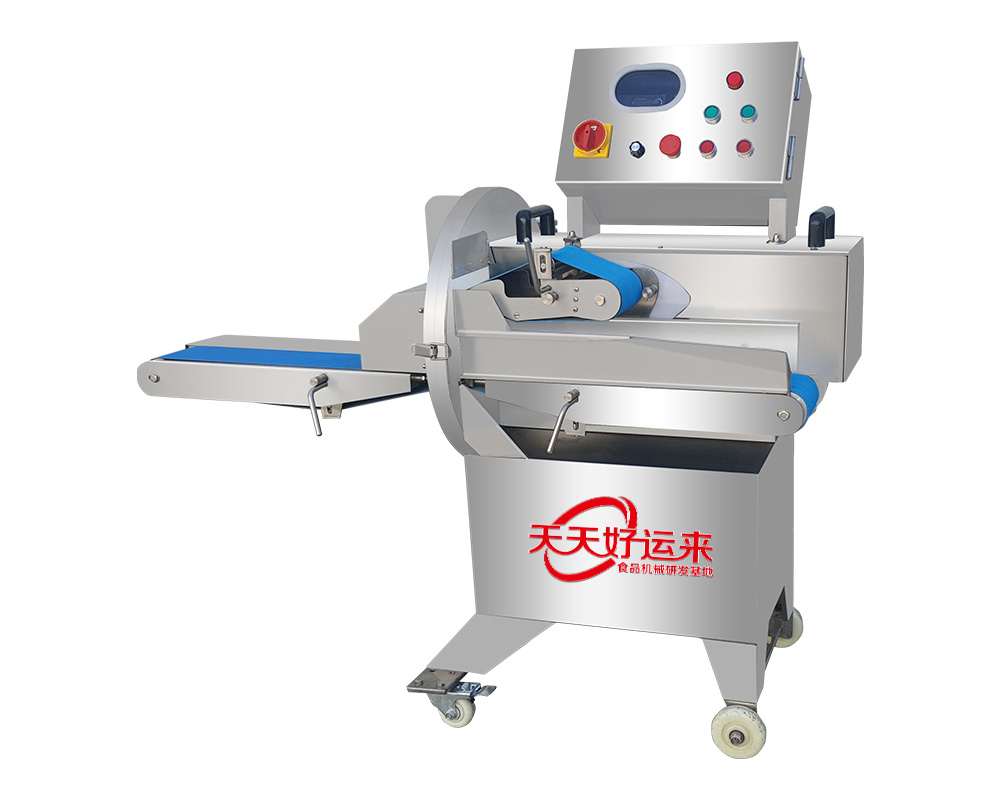 采用特制的兩把刀片能將叉燒肉、鹵味、豬頭皮、豬耳朵、牛肚、肥腸、牛肉等熟肉切成條、片狀,出料口連接輸送帶,使得切出來的物料擺放整齊,無需排列可直接裝入托盤。適用快餐業(yè),超市,大型食堂,食品行業(yè)使用。尺寸:0-40mm(可調(diào))傳送帶寬度:120mm